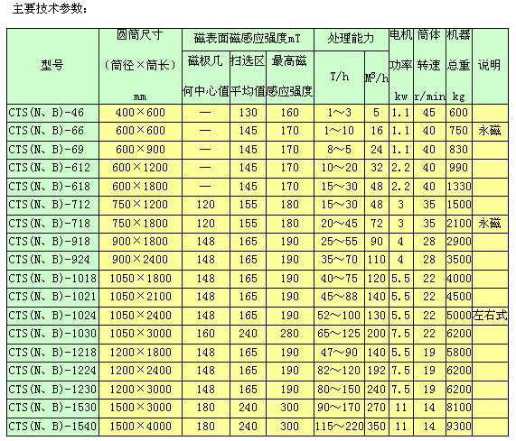 同一圓筒可配三種槽體,即順流槽(CTS)選別粒度≤6mm,逆流糟(CTN)選別粒度≤0.6mm,半逆流槽(CTB)選別粒度≤1mm。