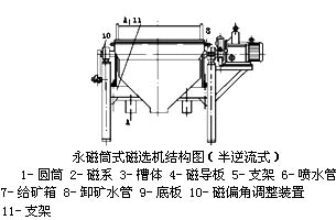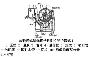 CTS、CTN、CTB系列永磁筒式磁選機(jī)磁場(chǎng)分旋轉(zhuǎn)式、固定式兩種機(jī)構(gòu),固定式主要適用于弱磁場(chǎng)濕式選別細(xì)顆粒的強(qiáng)磁性物質(zhì),或者除去非磁性礦物中的強(qiáng)磁性礦物,當(dāng)漿流入磁場(chǎng)區(qū)時(shí),其中強(qiáng)磁性礦物被吸附在圓筒表面,弱磁性和非磁性礦物被分選后排除,而吸附在圓筒表面的強(qiáng)磁性礦物隨圓筒的旋轉(zhuǎn)被帶出磁場(chǎng)區(qū)。旋轉(zhuǎn)式適用于細(xì)粒強(qiáng)(中強(qiáng))磁性礦物的干選,由于高速旋轉(zhuǎn)的作用,使磁性顆粒的磁滾翻次數(shù)大大高于普通磁選機(jī),這對(duì)于破環(huán)磁團(tuán)聚,提高富礦比具有顯著的效果,礦物經(jīng)分選后被分離成磁性物和非磁性物兩種,分別從各自的排礦口排出該機(jī),適用于礦石粒度為0.6-6mm的粗選和精選。
